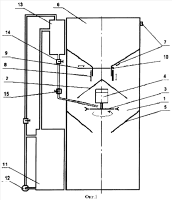 Изобретение относится к сельскому хозяйству. Протравливатель семян зерновых культур состоит из камеры протравливания с сужающейся в нижней части воронкой, в которой установлен конусный распределитель семян и под ним - ротационный распылитель рабочего раствора, бункера-дозатора семян с датчиками уровня, расположенного над камерой протравливания и соединенного с ней телескопической дозирующей заслонкой, бака для приготовления рабочего раствора с насосом, мерного цилиндра с дозатором рабочего раствора. Конусный распределитель семян установлен неподвижно, а в нижней его части по периметру выполнены вырезы, при этом ротационный распылитель рабочего раствора выполнен из одного диска с профилем «ласточкин хвост» с отверстиями по окружности и буртиком вокруг оси вращения в зоне подачи рабочего раствора. Перед дозирующей телескопической заслонкой может быть установлена отсекающаяся заслонка с электрическим концевым выключателем, соединенным с электромагнитным клапаном дозатора рабочего раствора, при этом рабочий раствор будет подаваться на распылитель самотеком. Изобретение позволяет повысить равномерность нанесения рабочего раствора на поверхность обрабатываемых семян, снизить затраты энергии на процесс распределения семян в камере протравливания, а также повысить техническую надежность конструкции. 1 з.п. ф-лы, 3 ил.