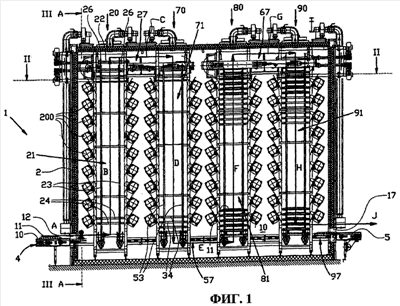 Печь для выпечки изделий из теста содержит камеру, имеющую транспортирующее средство для перемещения множества противней (10) с изделиями (11) из теста по вертикальной траектории через камеру печи, и две последовательности инжекторов, расположенных с одной и другой стороны от траектории транспортировки, следующих друг за другом в вертикальном направлении, имеющих две последовательности воздушных выпускных отверстий и ограничивающих горизонтально расположенные проточные камеры. Воздушные инжекторы с проточными камерами выполнены с возможностью подавать нагретый воздух в горизонтальном направлении и отклонять воздух в камеру печи через последовательность воздушных отверстий для равномерного распределения подаваемого воздуха над противнями. Воздушные инжекторы в первой последовательности предназначены для одновременного выпуска подаваемого воздуха, а инжекторы во второй последовательности предназначены для подачи воздуха в противоположном направлении и вместе с инжекторами первой последовательности являются частью воздушного контура, имеющего приводимый в движение воздушный винт. При этом печь содержит управляющее средство для периодического изменения направления привода винта во время вертикальной транспортировки противней с изделиями из теста. Печь по изобретению позволяет обеспечить равномерное обтекание изделий нагретым воздухом. 24 з.п. ф-лы, 12 ил.