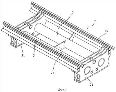 Изобретение относится к станинам станков. Станина снабжена цилиндрическими трубами и содержит опорные стойки и опорные профили. Опорные профили согласованы с опорными стойками и используются для поддержки и сборки приводного устройства. Цилиндрические трубы расположены между упомянутыми опорными стойками, проходя сквозь них, причем дополнительные опоры расположены между опорными стойками станины станка для дополнительной поддержки цилиндрических труб. Использование изобретения позволяет предотвращать деформацию, вызываемую силой кручения, с помощью одинаковых радиусов вращения цилиндрических труб во всех направлениях. 1 з.п. ф-лы, 3 ил.