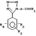 Использование: в медицине в качестве лекарственного средства для диабетических осложнений. Сущность изобретения: производные тетразола общей формулы:  где A - алкиленовая группа, имеющая -1-4 атома углерода; R1 - водород или низшая алкильная группа, R2 - водород, гидрокси, галоид, карбокси C1-7 алкил, амидо, амино, C1-7 алкокси, фенил, фенилокси, низший алкилтио, низший алкилсульфинил, низший алкилсульфонил, нитрогруппа или группа формулы: NHCOCOOR5, где R5 - водород или низший алкил, моно- или ди/низший/алкиламиносульфонил или группа формулы:  где A и R1 имеют указанные выше значения, R3 - водород, галоид, нитро, C1-7 алкил, C1-7 алкокси или гидрокси; R4 - водород, C1-7 алкил, C1-7 алкокси или группа -NHCOCOOR5, где R5 имеет указанные выше значения, при условии, что соединение формулы I не включает следующей комбинации заместителей; где A - метиленовая группа, R2, R3 и R4 - атомы водорода, и R1 - атом водорода, метильная группа или этильная группа; где A - этилиденовая группа, R2, R3 и R4 - атомы водорода, и R1 - атом водорода или этильная группа; где A - изопропилиденовая группа, R2, R3 и R4 атомы водорода, и R1 - атом водорода или этильная группа; где A - метиленовая группа, R2 - 4-бром, 3- или 4-хлор, 3- или 4-метил, 3 - или 4-нитро, или 3-трифторметильная группа, R3 и R4 - атомы водорода, и R1 атом водорода или этильная группа; и где A - этиленовая группа, R2, R3 и R4 - атомы водорода, и R1 - атом водорода или этильная группа. Соединение получают путем хлорирования соединения общей формулы II:  где R'1 низший алкил и полученное промежуточное соединение III:  подвергают взаимодействию с азидом натрия. Возможна трансформация радикала R1; описанные соединения используют в эффективном количестве в фармацевтической композиции, ингибирующей альдозоредуктазу. 2 с. и 1 з.п. ф-лы, 7 табл.