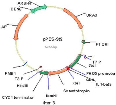 РЕКОМБИНАНТНАЯ ПЛАЗМИДНАЯ ДНК pPBS - St9, КОДИРУЮЩАЯ ПОЛИПЕПТИД СОМАТОТРОПИНА, И ШТАММ ДРОЖЖЕЙ SACCHAROMYCES CEREVISIAE ДЛЯ ПРОДУКЦИИ РЕКОМБИНАНТНОГО СОМАТОТРОПИНА