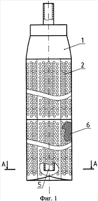 Изобретение относится к технике фильтрования в сахарной промышленности соков I и II сатурации, фильтрования сиропа. Фильтровальный патрон содержит вертикально установленный корпус, образованный двумя перфорированными пластинами, имеющими цетрально расположенные участки, образующие между собой в поперечном сечении эллипс, и периферийные участки, радиально расположенные относительно вертикальной оси корпуса, установленную внутри корпуса по высоте трубку для отвода фильтрата и закрепленную снаружи на корпусе фильтровальную ткань. Радиально расположенные периферийные участки пластин образуют сужающиеся каналы. Каждая перфорированная пластина изогнута в зоне между центральным и периферийным участками внутрь корпуса. Фильтровальная ткань закреплена на корпусе с возможностью ее перемещения относительно наружной поверхности указанных участков для ее очистки от осадка. Поверхность радиально расположенных периферийных участков следует выполнить волнообразной. Изобретение обеспечивает ускорение процесса регенерации при импульсной подаче сжатого воздуха внутрь фильтровального патрона за счет достижения большого размаха перемещения ткани относительно поверхности фильтровального патрона и повышение тем самым эффективности отслаивания и удаления осадка, а также величины удельной фильтровальной площади патрона. 1 з.п. ф-лы, 4 ил.