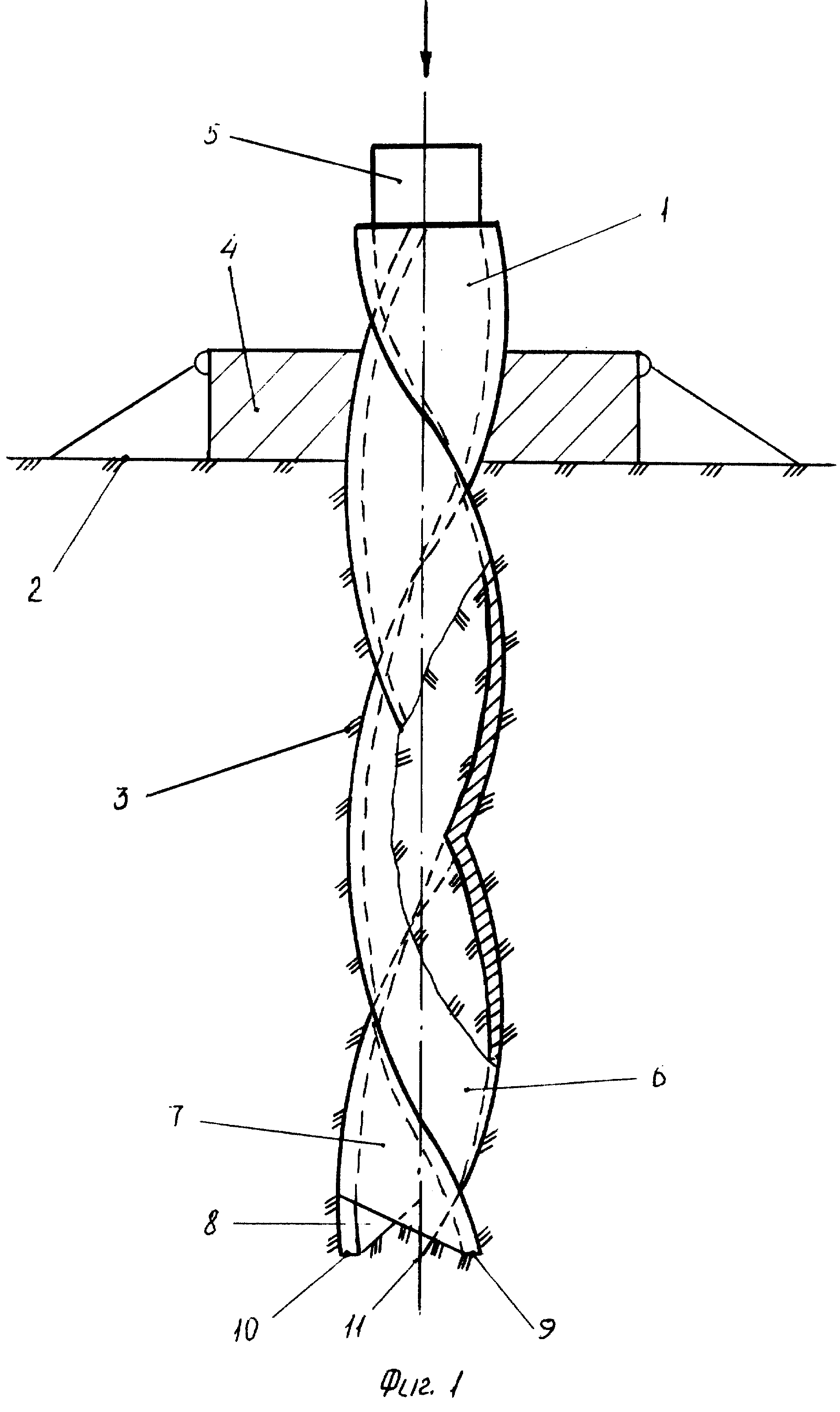 Изобретение относится к строительству, а именно к фундаментостроению. Винтовая свая включает винтовой ствол, снабженный расположенной и закрепленной на поверхности грунта гайкой. Новым является то, что ствол выполнен пустотелым из полос, свернутых в винт в продольном и поперечном направлении, и снабжен режущими кромками. Технический результат, обеспечиваемый изобретением, состоит в облегчении погружения сваи и снижении материалоемкости. 6 ил.