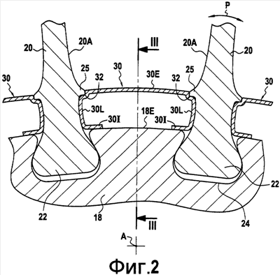 Группа изобретений относится к вращающемуся узлу вентилятора газотурбинного двигателя, предназначена для любого типа газотурбинного двигателя, наземного или авиационного, и, в частности, для авиационных турбореактивных двигателей, и позволяет при ее использовании обеспечить удержание межлопаточных площадок в радиальном направлении и упрощает сборку вращающегося узла вентилятора. Указанный технический результат достигается во вращающемся узле вентилятора (12) газотурбинного двигателя, содержащем диск (18), вращающийся вокруг оси А; множество лопаток (20), закрепленных своими ножками (22) на этом диске и направленных радиально наружу, начиная от этого диска; и множество междулопаточных площадок (30), каждая из которых расположена между двумя смежными лопатками (20) и ограничивает внутренний профиль канала потока текучей среды, проходящего через вентилятор. Эти смежные лопатки (20) содержат на своих находящихся друг против друга боковых сторонах (20А) кулисы (25), между которыми может перемещаться скольжением упомянутая площадка (30), при этом кулисы ограничивают радиальное перемещение упомянутой площадки (30) наружу. 3 н. и 7 з.п. ф-лы, 5 ил.