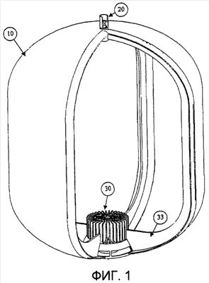 Изобретение относится к топливным бакам для космических платформ, пусковых установок и любых видов космических транспортных аппаратов. Аппарат включает топливный бак. Вмещающий компонент бака изготовлен из пластмассового материала, совместимого с текучими средами, которые хранятся в баке, посредством технологии горячего формования отливки. Вмещающий компонент бака содержит внутри устройство для распределения жидкости и устройство для предотвращения противотока паров. Оба устройства, полностью или частично, изготовлены из того же самого пластмассового материала, используемого для вмещающего компонента. Вмещающий компонент бака образован нижним сводом, изготовленным из пластмассы, который объединяет внутри себя устройство для распределения текучей среды без наддува, с линиями подачи посредством отделителя жидкости, стрингеров и отстойников, и верхним сводом, изготовленным из пластмассы, который объединяет внутри себя устройство для предотвращения противотока паров. Оба свода объединяет в одно целое сегмент трубы, чтобы заполнять линии текучей средой, содержащейся в баке, и непосредственно бак газом наддува. Использование изобретения позволит обеспечить совместимость различных видов текучих сред и минимизировать общий вес бака. 6 з.п. ф-лы, 9 ил.