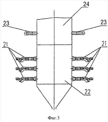 Изобретение относится к области энергетики. Способ снижения оксидов азота в котле, работающем на распыленном угле, в котором используются горелки типа внутреннего сгорания, при этом способ включает следующие операции: все или часть горелок для распыленного угля, установленные на боковой стенке (стенках) котла, работают в режиме внутреннего сгорания, т.е. в процессе всей работы котла средства воспламенения в горелках типа внутреннего сгорания поддерживают в рабочем состоянии; в условиях, при которых распыленное угольное топливо уже воспламенилось при впрыскивании из горелок, количество подаваемого в первичную зону сгорания котла вторичного воздуха уменьшают, и вследствие этого в первичной зоне сгорания образуется сильно окисляющая атмосфера, так что распыленное угольное топливо сжигают в условиях высокой температуры и дефицита кислорода; и оставшийся воздух подают в печь в верхней секции печи котла в виде острого дутья, образуя область сильно восстанавливающей атмосферы, в результате чего не полностью сгоревший в первичной зоне сгорания котла распыленный уголь интенсивно смешивается в этой области с воздухом и полностью реагирует, обеспечивая полное сгорание распыленного угля. Внутренняя часть каждой из горелок типа внутреннего сгорания разделена на несколько ступеней камер сгорания, для потока первичного воздуха и распыленного угля в горелке осуществляется разделение по типу «плотный/рыхлый», где более плотный распыленный уголь поступает в центральную камеру, а более рыхлый распыленный уголь поступает в остальные камеры сгорания, в результате чего поток воздуха и распыленного угля в центральной камере концентрируется до уровня плотности, подходящей для воспламенения, более плотный распыленный уголь в центральной камере горелки воспламеняется вначале с помощью воспламеняющего средства, после чего оставшийся более рыхлый распыленный уголь воспламеняется за счет тепла, излучаемого при воспламенении и горении воспламененного распыленного угля, причем распыленный уголь сгорает в горелке ступенчатым образом. Изобретение позволяет уменьшать NOx без падения эффективности котла. 5 з.п. ф-лы, 6 ил.