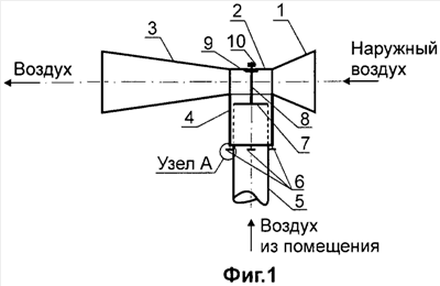 Устройство предназначено для естественной канальной вентиляции зданий и сооружений различного назначения: жилых, общественных, промышленных, а также погребов, подвалов, гаражей и др. Устройство представляет собой насадку в виде трубы Вентури, состоящей из конфузора, горловины и диффузора, канал горловины которой соединен с внутренней полостью вытяжной трубы (шахты) с помощью патрубка на скользящей опоре на ее боковой поверхности. Технический результат - повышается воздухообмен с окружающей средой, исключается применение вентиляторов для механического удаления воздушной среды, т.е. способствует экономии материальных средств и энергоресурсов. 2 ил.