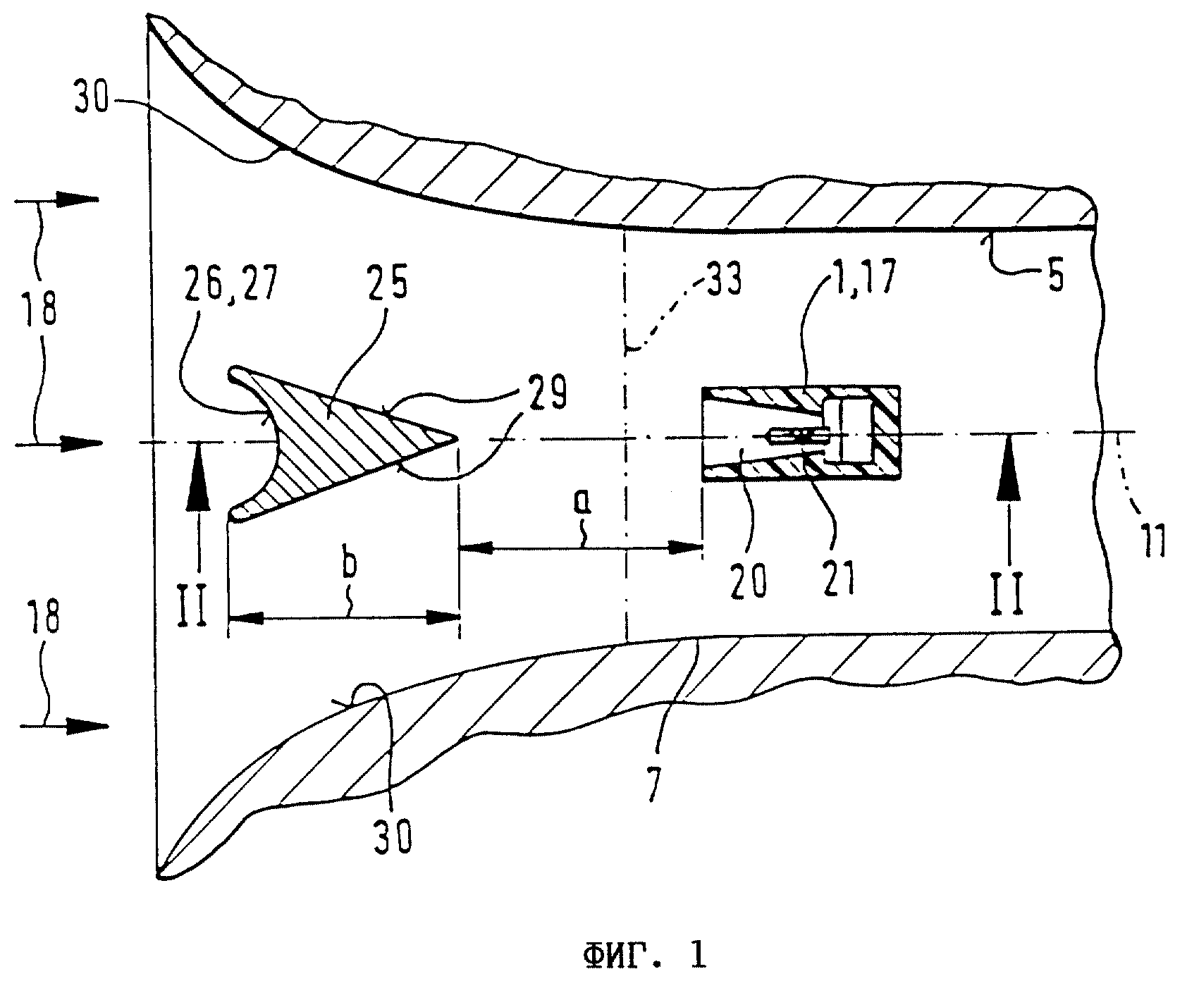 Изобретение предназначено для измерения массового расхода воздуха, поступающего в двигатель внутреннего сгорания. Перед измерительным элементом, выступающим в трубопровод, на сужающемся в направлении потока участке трубопровода установлен дефлектор призматической формы. Лобовая поверхность дефлектора имеет углубление в форме желоба. Дефлектор расположен вертикально и на своем нижнем конце имеет окно, сообщающееся с углублением. Изобретение обеспечивает повышение точности измерения за счет защиты измерительного элемента от осаждения на нем жидких компонентов, переносимых потоком воздуха. 5 з. п. ф-лы, 3 ил.