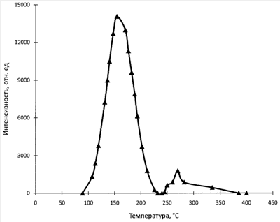 Изобретение относится к получению рабочего вещества, которое может быть использовано для изготовления термолюминесцентного детектора ионизирующего излучения, использующегося в индивидуальной дозиметрии для определения поглощенных доз персонала; для определения поглощенных доз пациентов при проведении рентгеновской диагностики и терапии; при определении поглощенных доз в поле облучения высокодозовых технологических установок. Технический результат - расширение диапазона регистрируемых доз ионизирующего излучения рабочего вещества по пику, обусловленному поглощением SiO2, с максимумом при 154°С, от 10-4 кГр до 1 кГр и по пику, обусловленному поглощением УДА, с максимумом при 270°С, от 1 кГр до 100 кГр. Рабочее вещество для термолюминесцентных детекторов ионизирующего излучения включает нанодисперсный порошок алмаза с размером частиц около 5 нм, порошок материала на основе SiO2, размельченный до крупности <0,08 мм, и силикатный клей в качестве связующего двух материалов. Синтез композитного рабочего вещества проводят путем смешивания SiO2 и УДА в пропорциях, мас.%: ультрадисперсный порошок алмаза с размером частиц около 5 нм - 25-65, SiO2 - 25-65, силикатный клей - остальное. 1 ил., 2 табл.