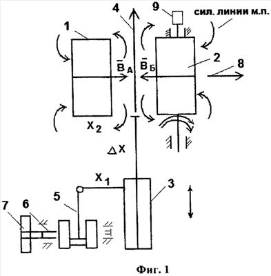 Изобретение относится к области электротехники и энергетики, в частности к устройствам для получения механической энергии и преобразования ее в различные другие виды, например в электрическую и тепловую. Задачей предлагаемого изобретения является получение механической энергии по принципу неоднократного применения. Технический результат, достигаемый в результате использования предлагаемого изобретения, состоит в обеспечении возможности преобразования силового взаимодействия системы из постоянных магнитов и ферромагнетика в механическую энергию и далее в другие виды энергии, например электрическую и тепловую. Указанный технический результат достигается тем, что предлагаемое устройство преобразования силового взаимодействия системы из постоянных магнитов и ферромагнетика в механическую энергию по принципу неоднократного применения содержит как минимум два постоянных магнита и ферромагнетик, при этом один из постоянных магнитов установлен неподвижно, а второй постоянный магнит установлен с возможностью вращения относительно оси, перпендикулярной главному вектору поляризации, причем ферромагнетик связан с исполнительным механизмом, который является приемником энергии и установлен с возможностью возвратно-поступательного движения. 4 з.п. ф-лы, 3 ил.