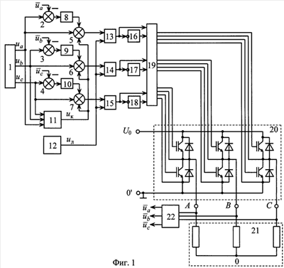 Keliang Zhou and Danwei Wang, Relationship Between Space-Vector Modulation and Thee-Phase Carder-Based PWM: A COMPEHENSIVE Analysis IEEE transactions on industrial endustrial electronics, Vol.49, No.1, February 2002, page 186-196. RU 2101849 C1, 10.01.1998. RU 2295824 C1, 20.03.2007. RU 2157043 C1, 27.09.2000. EP 0019138 A1, 26.11.1980.