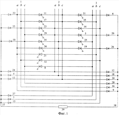Изобретение относится к области преобразовательной техники и может найти применение для питания потребителей постоянного тока с повышенными требованиями к качеству преобразования при различных уровнях выпрямленного напряжения. Предложенным способом обеспечивается высокое значение коэффициента мощности при любом уровне выпрямленного напряжения и высокой кратности частоты его пульсации. Способ регулирования уровня выпрямленного напряжения р-пульсного вентильного преобразователя, содержащего р/6 последовательно расположенных преобразовательных секций, заключается в дискретном изменении уровня выпрямленного напряжения преобразователя, при котором заданный из n=1, 2,, р/6 уровень выпрямленного напряжения формируют суммированием нерегулируемых выпрямленных напряжений, соответственно, k=1, 2,, р/6 преобразовательных секций, при этом, по крайней мере, один из уровней формируют путем принудительной ротации преобразовательных секций в цепи тока нагрузки, причем при формировании любого из n=2, 3,, р/6 - 1 уровня в процесс преобразования циклически, шесть раз в течение периода, посредством отпирания управляемых вентилей по заданному алгоритму включают все р/6 преобразовательных секций. Предлагаемый способ обеспечивает сохранение максимально достижимого коэффициента мощности р-пульсного вентильного преобразователя при формировании любого (из общего числа р/6) уровня выпрямленного напряжения и высокого качества выпрямленного напряжения. 9 ил., 4 табл.