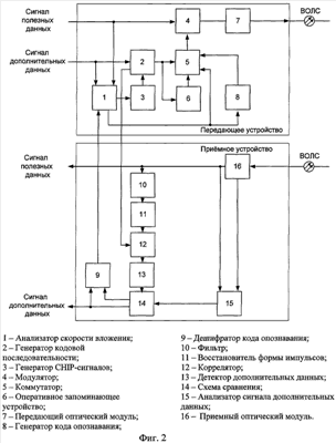 Изобретение относится к области волоконно-оптических систем передачи, в частности к системам, используемым для телеметрии и удаленного управления системами связи. Достигаемый технический результат - обеспечение передачи дополнительной информации с переменной скоростью и с заданной достоверностью. Технический результат достигается за счет того, что сигнал дополнительных данных, который выделяют на приеме корреляционным методом, сравнивают с сигналом дополнительных данных, выделенным из сигнала полезных данных и сигнала наличия ошибки приемного оптического модуля, в случае различия сигналов дополнительных данных, выделенных независимыми методами, формируют команду переспроса, по которой в передатчике формируют и передают сигнал переспроса, при этом в качестве сигнала дополнительных данных передают состоящий из нескольких битов код опознания, несущий информацию о необходимости повторения предыдущего блока дополнительных данных, либо об увеличении/уменьшении скорости передачи дополнительных данных. 6 ил.