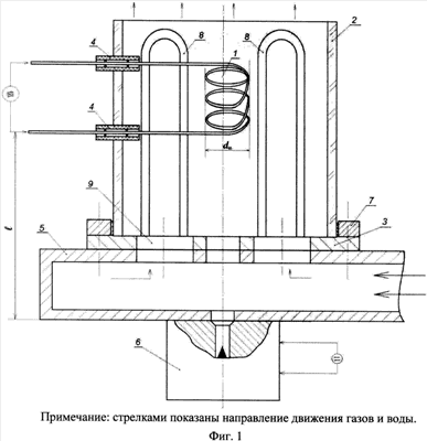 Изобретение относится к области плазменной техники и касается конструкции высокочастотного проточного индукционного плазмотрона атмосферного давления, в частности к плазмотронам для разогрева задымленных продуктов сгорания топлива, отходов, в том числе медицинских, и воздуха. Техническим результатом заявляемого изобретения является повышение стабильности горения и инициирования кольцевого высокочастотного разряда в разрядной камере плазмотрона, что позволяет разогревать задымленные продукты сгорания топлива и отходов. Сущность заявляемого изобретения заключается в том, что в конструкции высокочастотного плазмотрона, состоящей из индуктора и разрядной камеры, охлаждаемой изнутри трубками с водой, которые вынесены за зону кольцевого разряда и образуют продольные щели, индуктор с пылезащитными вводами расположен внутри разрядной камеры соосно и его наружный диаметр в два раза меньше внутреннего диаметра камеры по трубкам, а на входе разрядной камеры соосно расположена электродуговая горелка с промежутком до индуктора менее длины плазменной струи горелки и в который (промежуток) производится ввод разогреваемого газа. 2 ил., 1 табл.